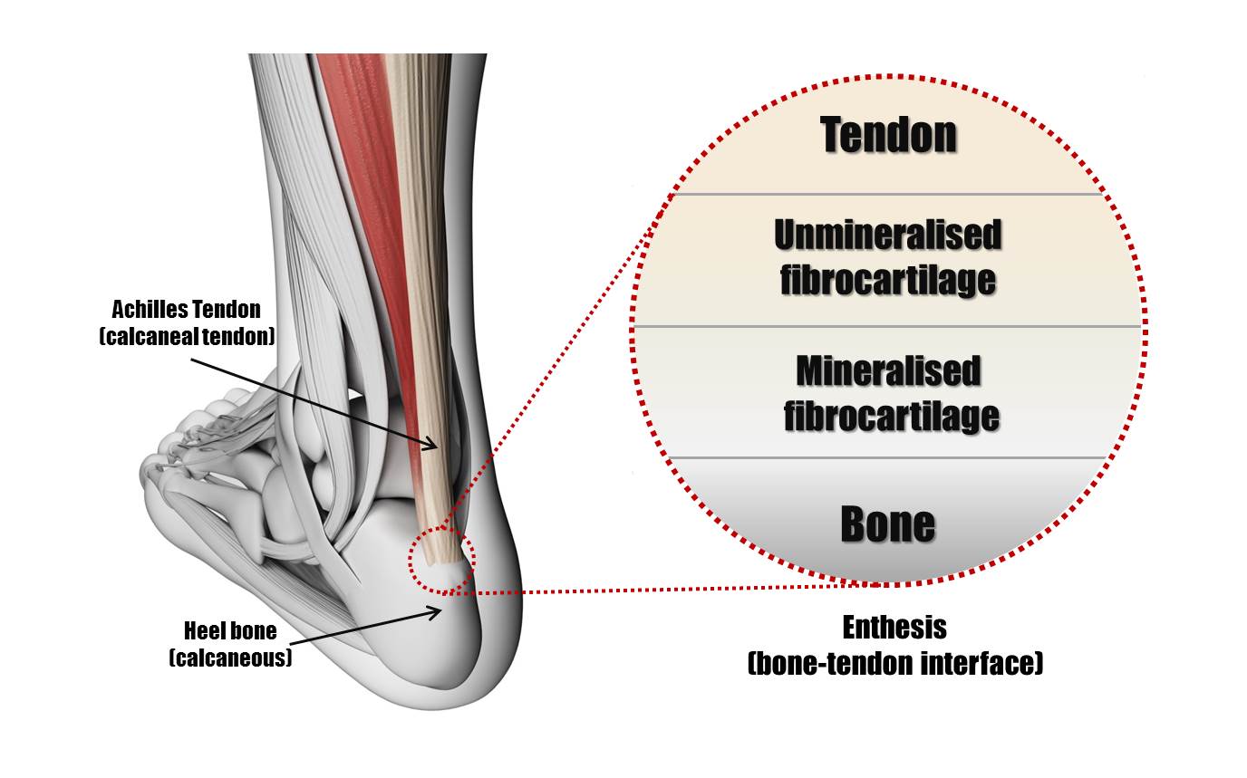 The anatomical structures of tissue transitions are fundamental to their function. These transitions are biochemically and biomechanically adapted to allow smooth transfer of force between tissues with varying mechanical properties. For example, the force generated by muscle contraction must travel from a compliant tendon to a stiff bone to facilitate movement. The bone-tendon junction is therefore adapted to achieve this, with a gradual increase in mineralisation from tendon to bone, the presence of fibrocartilage at the interface and changes in the alignment of collagen fibres (Figure 1). Similar adaptations are seen throughout the body at tissue junctions and so it is important to establish adequate transition points if engineered tissues are to become a realistic possibility for implantation.